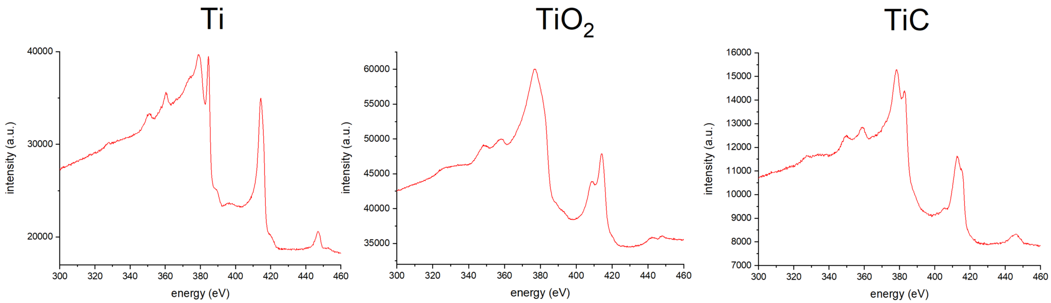 Augerove spektrá troch rôznych Ti zlúčenín.